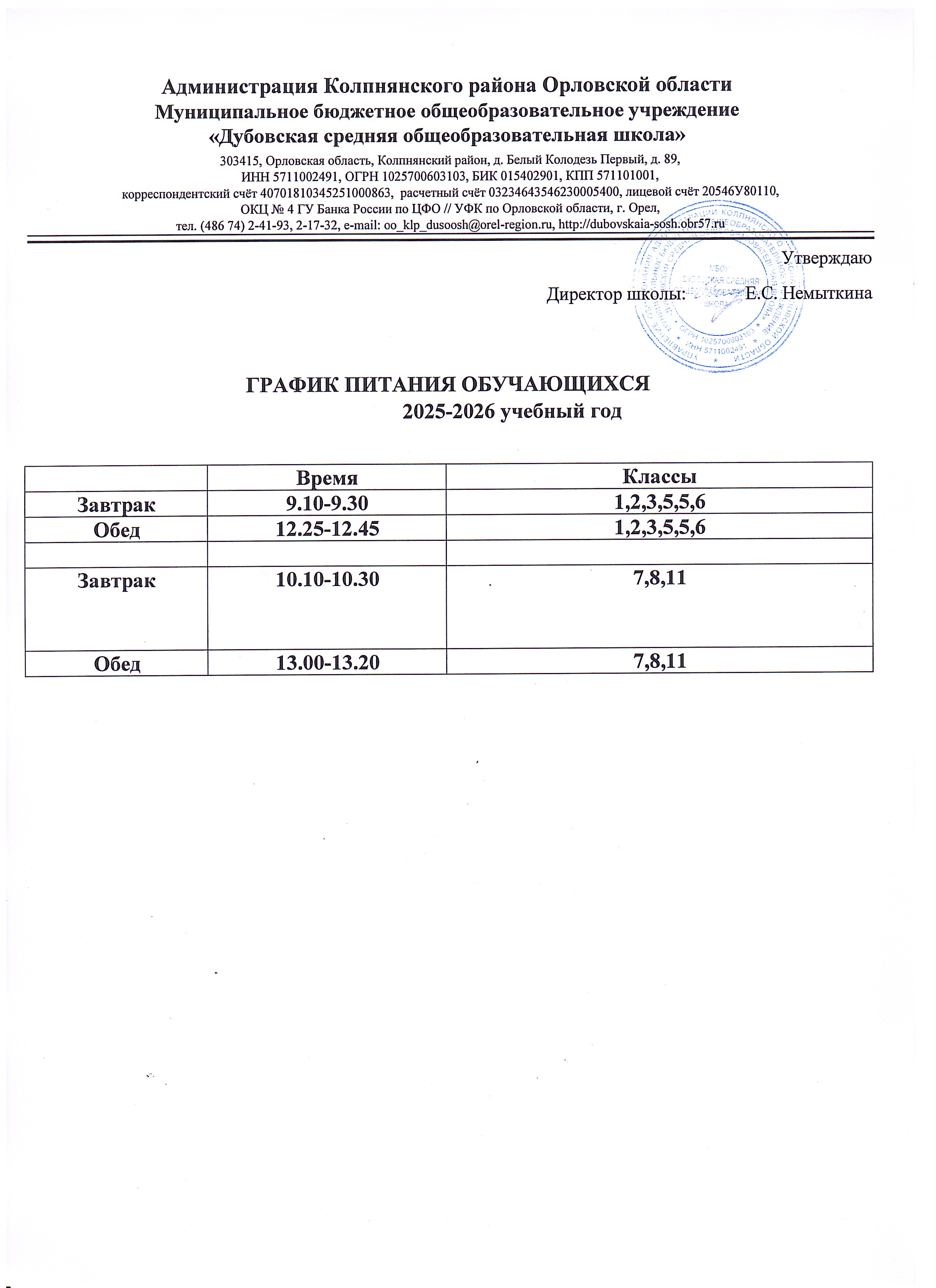 Приказ ОУ "Об организации питания учащихся в школьной столовой в 2025 -2026 учебном году"